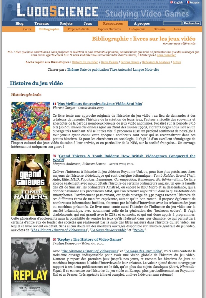 Le site ludoscience.com a eu la bonne idée pour cett rentrée 2014 de proposer une bibliographie de livres sur les jeux vidéos organisés en 5 thèmes.