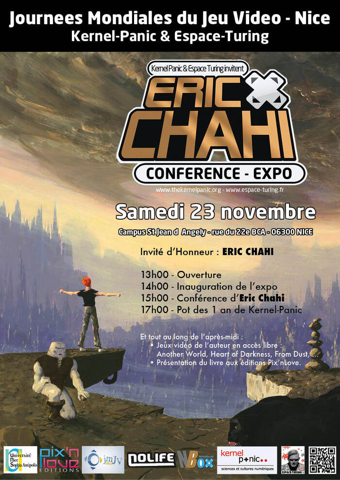 L’Espace-Turing et Kernel Panic ont l’immense plaisir d’accueillir un des plus grands auteurs français de jeux vidéo, ERIC CHAHI, pour une journée exceptionnelle à l’occasion :