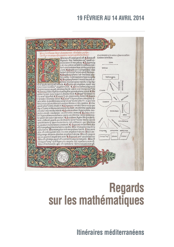 Réalisée par le groupe Epistémologie et Histoire des Mathématiques de l’IREM d’Aix-Marseille, cette exposition est un voyage à travers la Méditerranée explorant la circulation des savoirs scientifiques, qui ont permis que se forgent des idées et des concepts toujours vivants dans les mathématiques d’aujourd’hui. Images, textes, objets, instruments, c’est d’une part autour de cartes que s’articulent les sujets montrant comment la science mathématique s’est développée, d’autre part avec une frise chronologique qui permet de resituer les événements évoqués dans leur contexte historique.