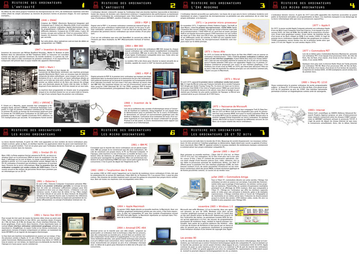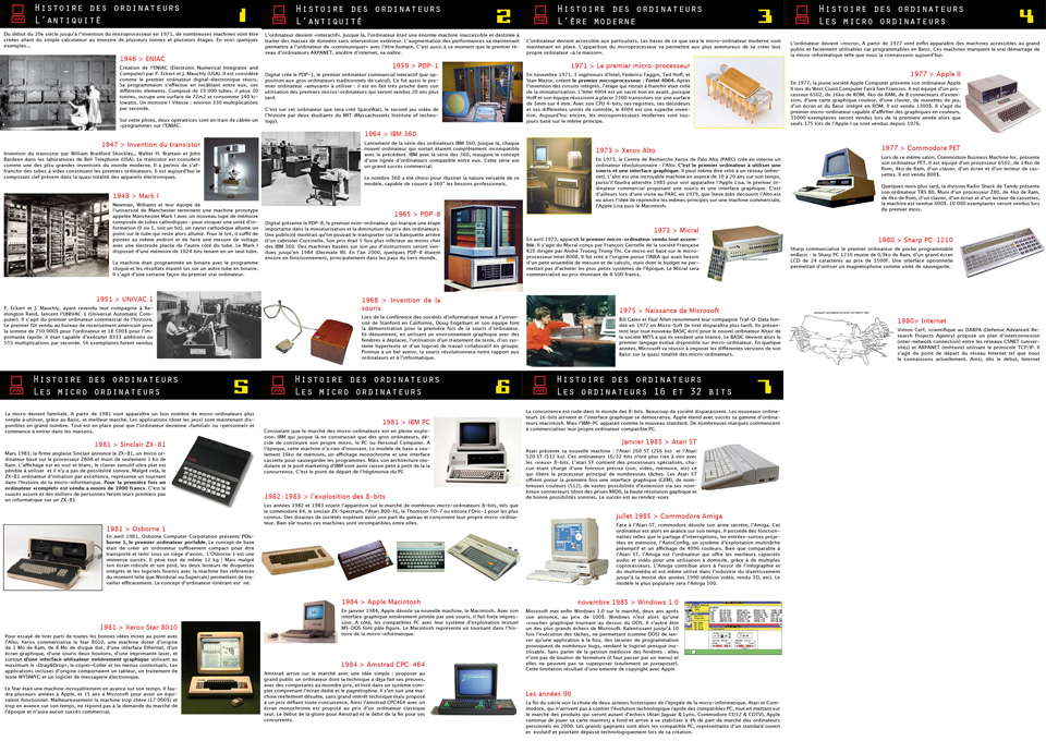 7 panneaux + support publicitaire d’époque + ordinateurs de collection.