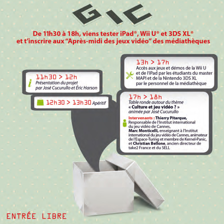 A l’occasion du nouveau service de prêt de jeux video et tablette numérique, la médiathèque de Cannes organise une journée de découverte "Game In Cannes"