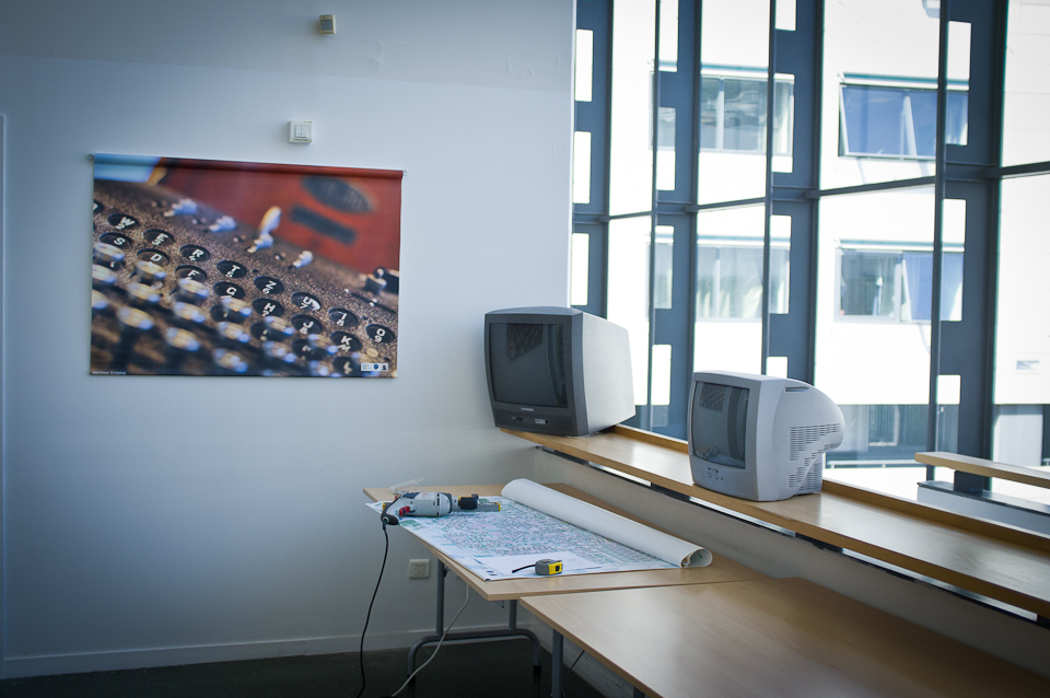 Nous quittons nos bureaux réaménagés en salles d’expo pour un espace plus grand d’un seul tenant. Le lieu est magnifique, mais très difficile d’aménager : il n’y a pratiquement aucun mur.