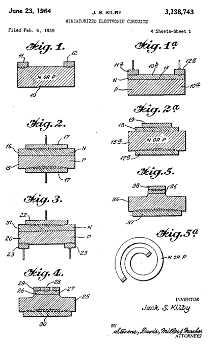 – Brevet U.S. Patent 3,138,743 "Miniaturized Electronic Circuits"