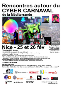 – 18h : auditorium du Musée d’Art Moderne de Nice place Yves Klein, présentation de tous les participants sous forme de BarCamp sur le thème "Virtuel carnaval" et laison depuis second Life avec Musei di Roma Capitale in SL et le Carnaval de Rome