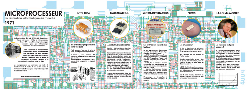 "Après le transistor (Bell Lab - 1948), et le circuit intégré (Texas Instrument - 1958), le microprocesseur (Intel - 1971 ) fut le 3ème étage technologique nécessaire pour que l’informatique envahisse le monde et le transforme.