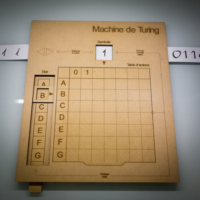 A travers un exemple simple et visuel, les élèves conçoivent la table d’actions et simule le fonctionnement sur une machine de Turing.