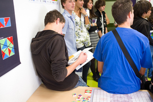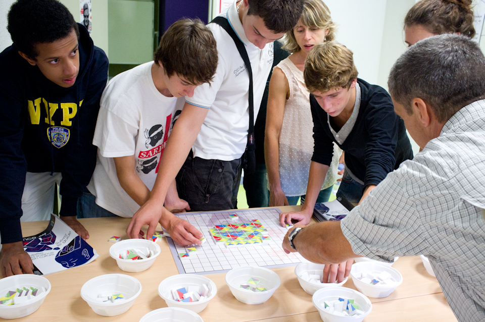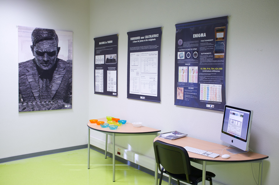 C’est le puzzle de Wang (pavages) qui a eu le plus de succès auprès des plus jeunes. Pour les profs ce sont le fonctionnement de l’Enigma et la calculatrice à billes.