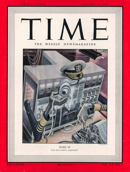 – Avènement de la société numérique de 1950 à nos jours : les couverture du magazine "Time". – Lire l’article du Time : "Science : The Thinking Machine"