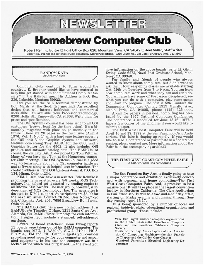 C’est à cette association que Bill Gates envoie une lettre ouverte (An Open Letter to Hobbyists) en janvier 1976, accusant ses membres de vol.