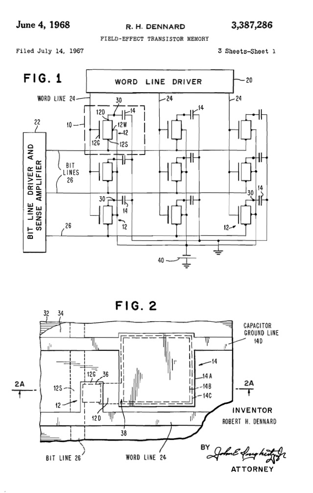 La simplicité structurelle de la DRAM - un pico-condensateur et un transistor pour un bit - permet d’obtenir une densité élevée. Son désavantage réside dans les courants de fuite des pico-condensateurs : l’information disparaît à moins que la charge des condensateurs ne soit rafraîchie avec une période de quelques millisecondes. D’où le terme de dynamique. A contrario les mémoires statiques SRAM n’ont pas besoin de rafraîchissement mais utilisent plus d’espace.