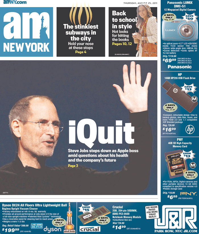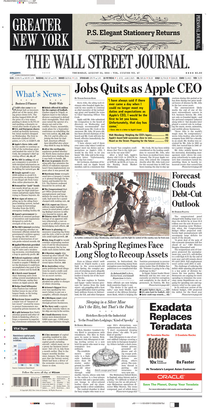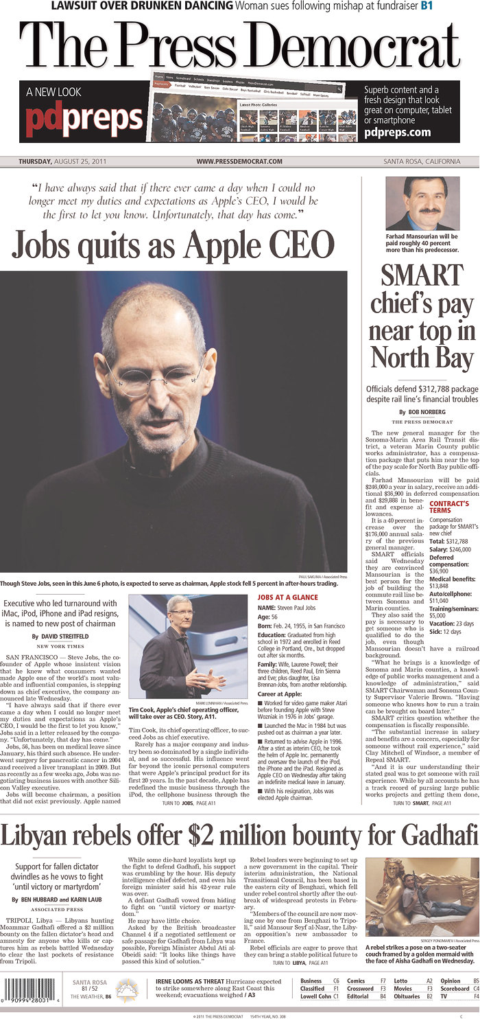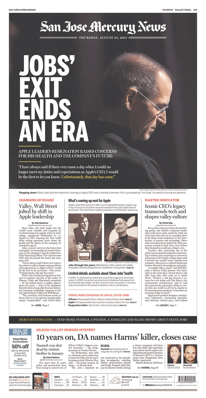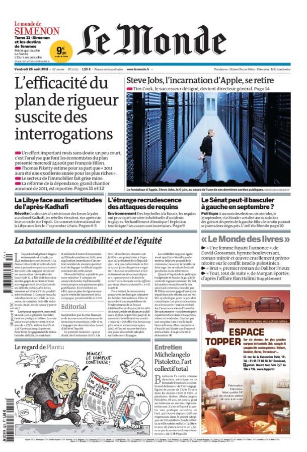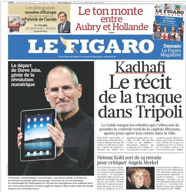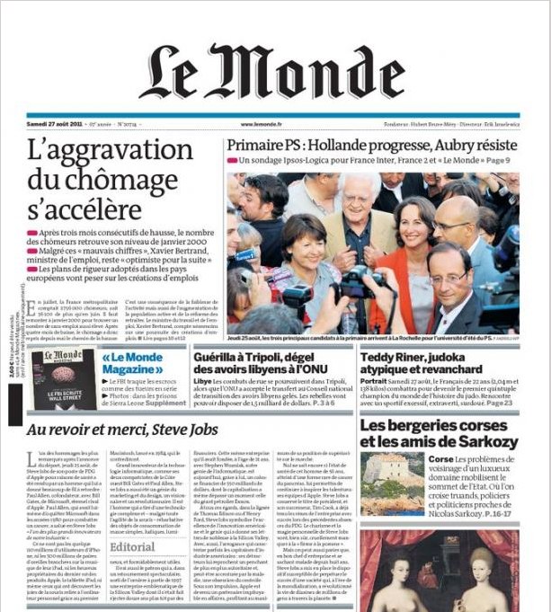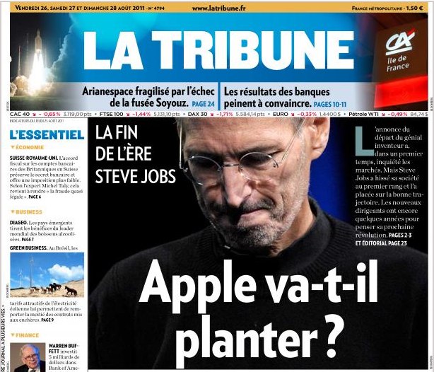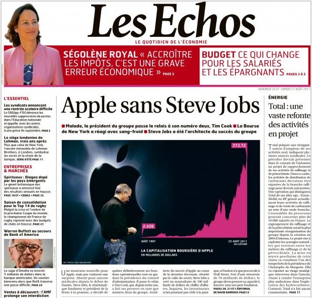 Mais c’est le départ de S. Jobs de la direction d’Apple qui semble faire le plus date.