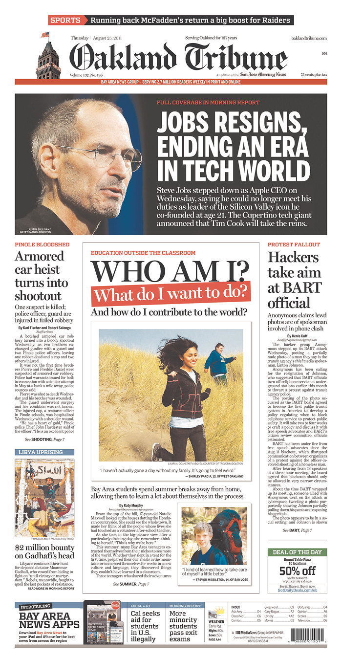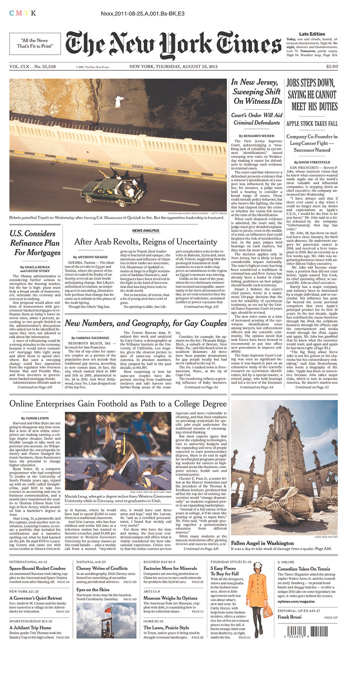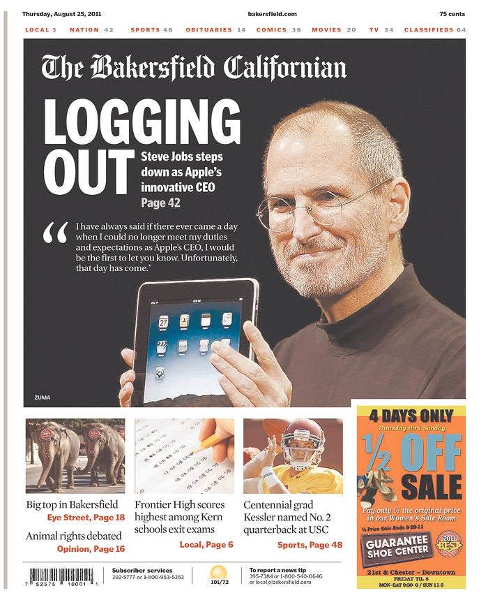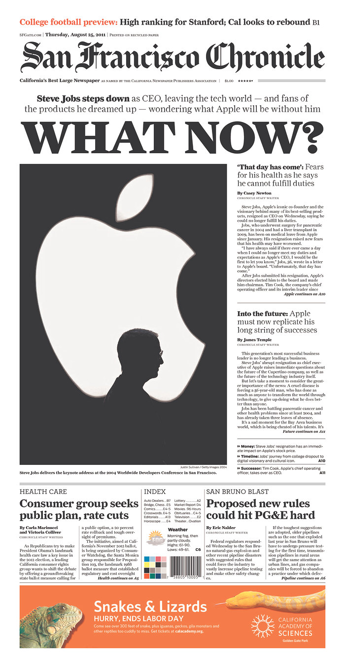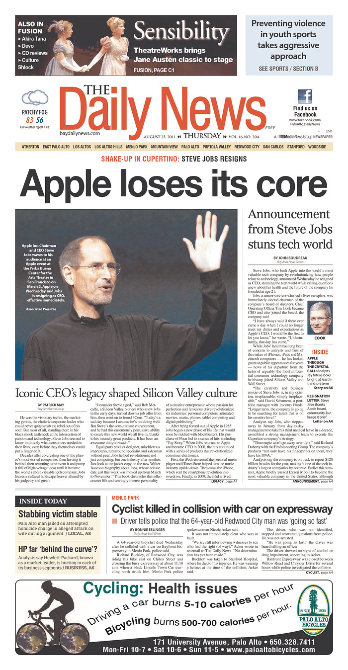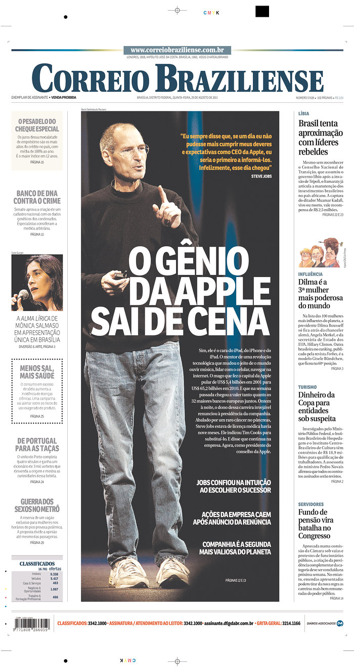 Mais c’est le départ de S. Jobs de la direction d’Apple qui semble faire le plus date.