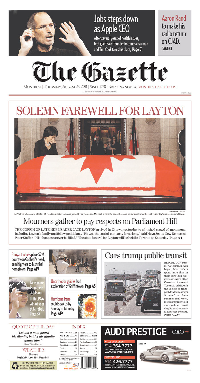 L’actualité du jour partout dans le monde : la chute de Kadhafi, la fin des poursuites contre DSK, la crise financière...