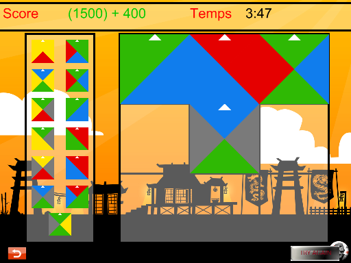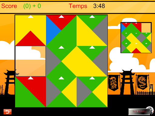 Casse-tête chinois : Le joueur se retrouve avec les pièces du Pavage dans le désordre et il doit les remettre dans l’ordre à l’aide de la case vide et de l’aide visuelle mis à sa disposition.