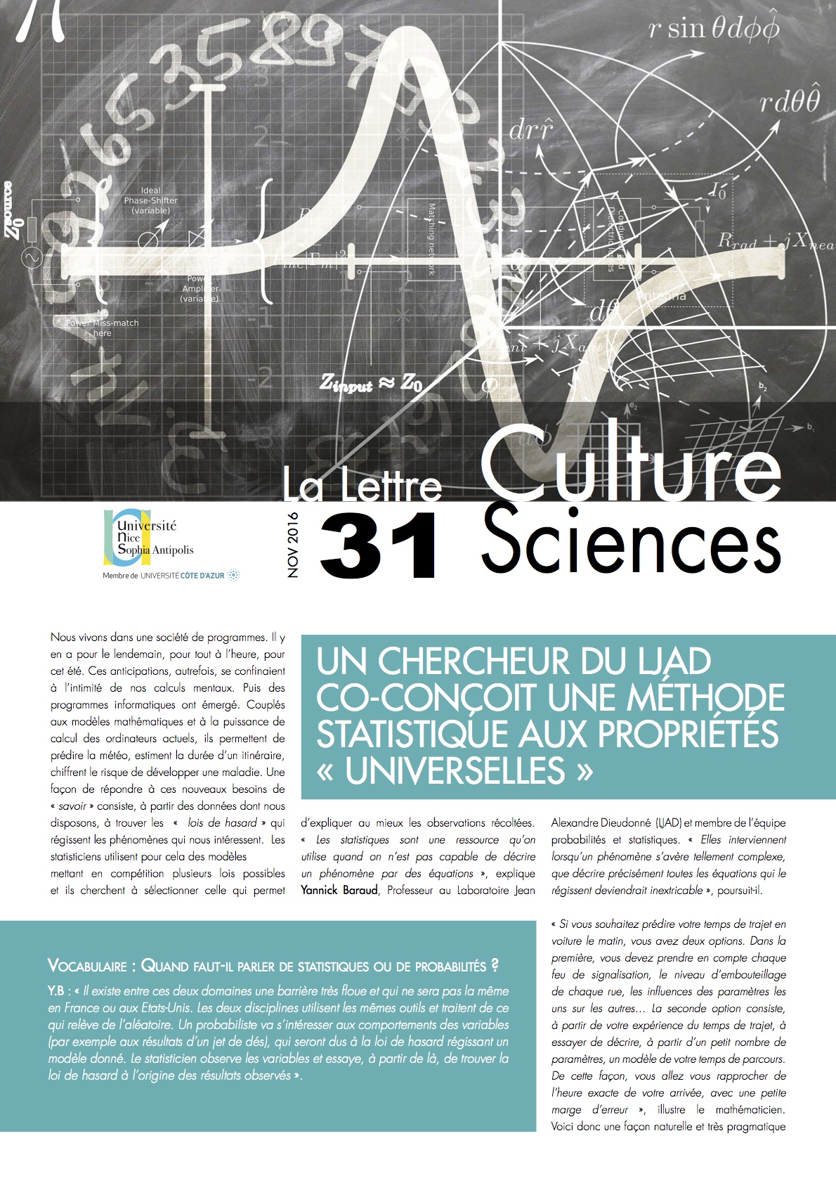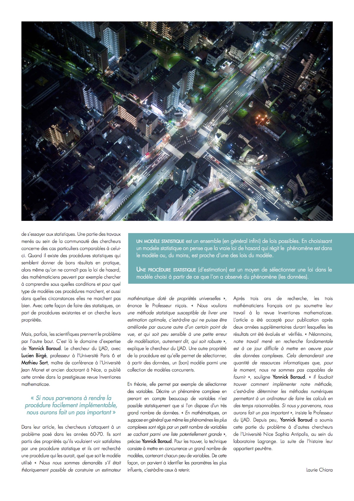 mettant en compétition plusieurs lois possibles et ils cherchent à sélectionner celle qui permet d’expliquer au mieux les observations récoltées. « Les statistiques sont une ressource qu’on utilise quand on n’est pas capable de décrire un phénomène par des équations », explique Yannick Baraud, Professeur au Laboratoire Jean