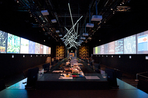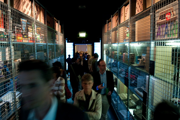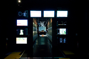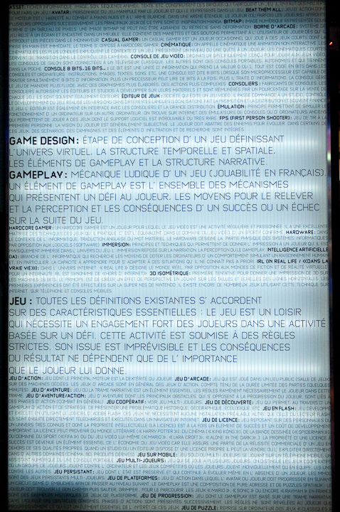 On se laisse d’autant plus embarquer dans cette histoire, que l’ambiance a été travaillée avec plusieurs espaces. Plutôt sombre, c’est essentiellement la lumière des écrans qui illuminent les lieux (ce qui fait dire aux plus grincheux dans les médias qu’il ne s’agit pas d’une exposition mais d’une grande salle d’arcade, sans comprendre que c’était un choix délibéré).