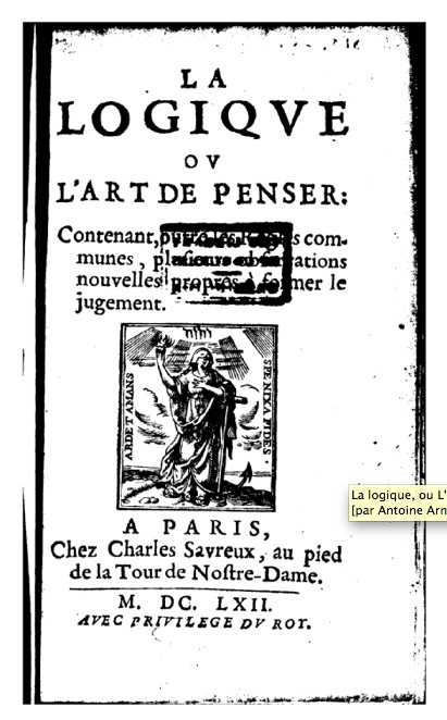 – "La logique ou l’art de penser" (1662) à lire sur Gallica